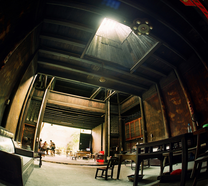 院內(nèi)廂房按家室的輩分依次居住。廂房的木窗雕龍刻鳳,每一板雕刻都是一個(gè)美麗的傳說(shuō)。其中《梁?!贰ⅰ短煜膳洹?、《蚌殼燈》、《彩龍船》、《鼠叼葡萄》、《老鷹抓雞》等雕刻更是入木三分,惟妙惟肖。樓上則主要用于囤積貨物,擺放雜物、晾曬衣物等。后側(cè)建有伙房和廁房,院落后部則是花園,花園的盡頭緊連著河邊的私家碼頭。