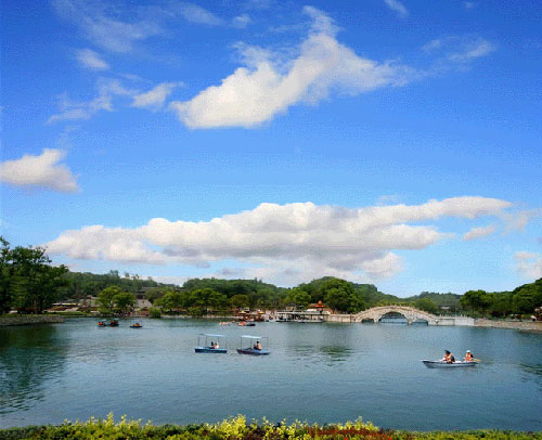 君山又是一個秀麗的綠洲,島上的草木自古就很聞名。現(xiàn)在每逢初春漲水之前,湖灘上綠草綿綿,野花斑斕,頗具草原風(fēng)味;一到夏天水漲,葦葉青青,水鳥出沒,又是一派蘆蕩景象。君山有各種各樣的樹,多達(dá)200余種,各種花卉,四時怒放,真是青碧連云,香飄全島。叢綠之中,尤以竹林、茶園最富特色。