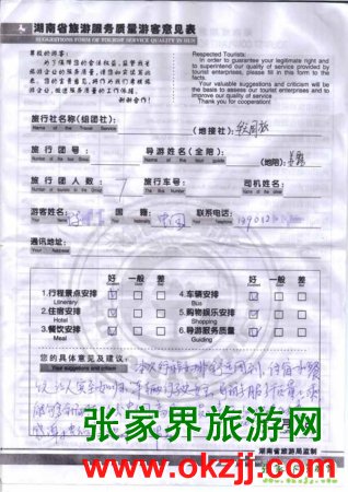 2010年6月17日陳先生一行7位旅游質(zhì)量反饋