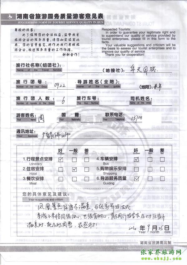- 2011年10月26日張小姐一行18人旅游質(zhì)量反饋 [10482]