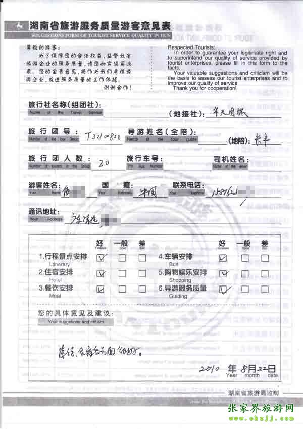- 游客夏先生為表揚(yáng)導(dǎo)游李姣姣寫來表揚(yáng)信致我張家界... [14811]
