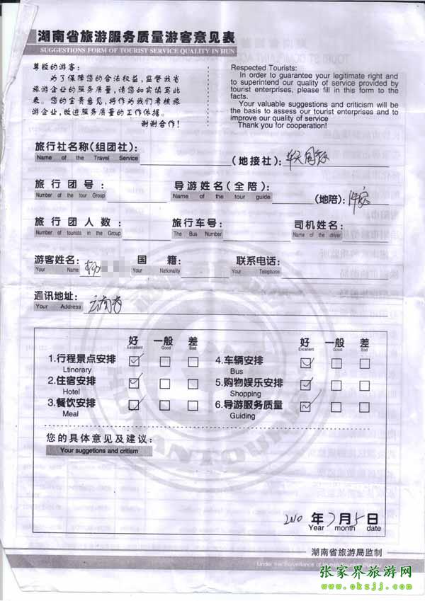2010年7月5日云南楊小姐旅游質(zhì)量反饋