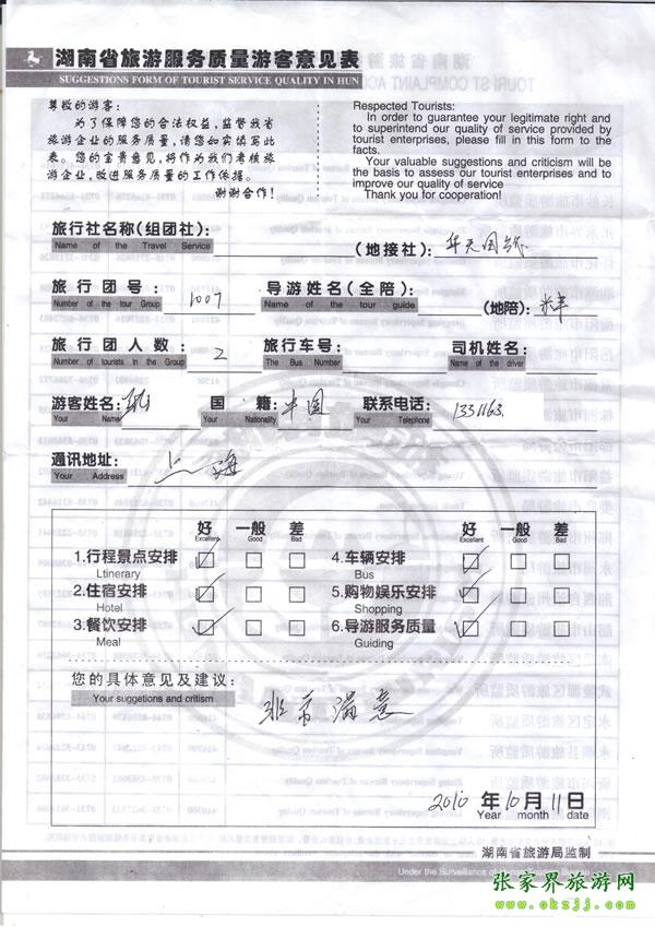 - 2011年10月26日張小姐一行18人旅游質(zhì)量反饋 [10482]