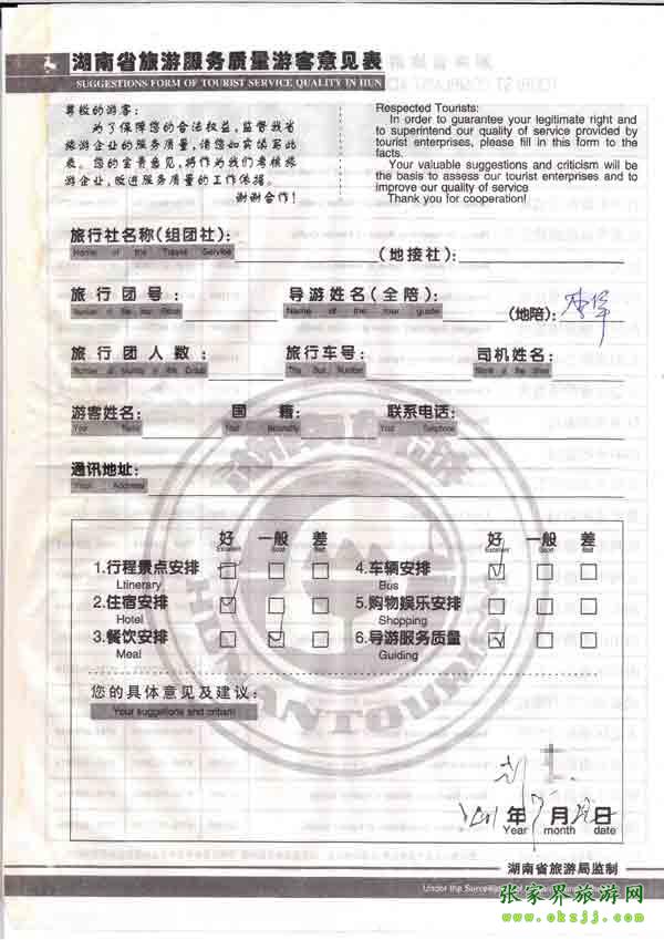 - 游客夏先生為表揚(yáng)導(dǎo)游李姣姣寫來表揚(yáng)信致我張家界... [14811]
