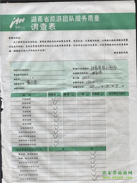 2011年10月5日黃先生一行17人旅游質量反饋