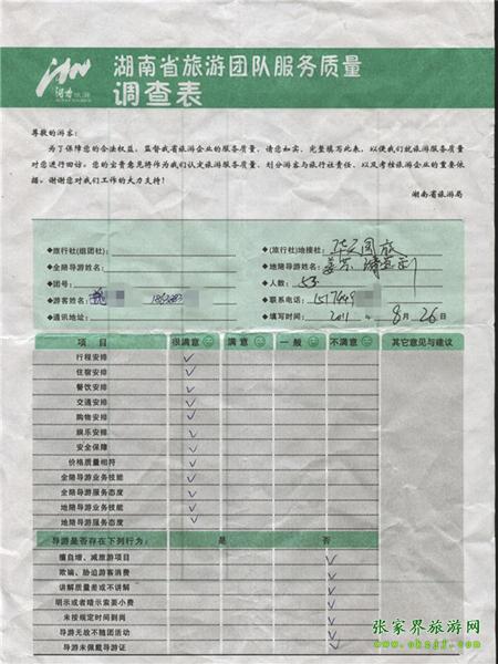2011年8月26日魏小姐一行53人旅游質(zhì)量反饋