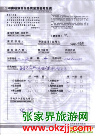 - 游客夏先生為表揚導游李姣姣寫來表揚信致我張家界... [14811]