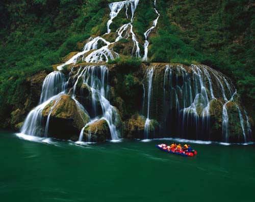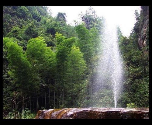 在金鞭溪游覽過程中,可見一組奇峰,有兩座較高的石峰緊密相連,下半截連為一體,上半截一高一矮,高者略欠身,低者稍后仰,好一幅相愛擁抱的絕妙畫面,恰似一對久別重逢的夫妻,故名相會峰,亦稱千里相會。相傳東海龍宮小龍女常來此地觀賞風(fēng)景,一次偶然的機(jī)會,結(jié)識了峨眉山遠(yuǎn)道而來的后生,二人情投意合,很快便產(chǎn)生了愛情。龍王知道此事以后,非常惱怒,決意拆散二人,多次將小龍女關(guān)在龍宮,但小龍女想方設(shè)法逃出來,常常與情人相會。龍王一氣之下,將二人點化成石,便成石峰“千里相會”。 十一、茅巖河漂流