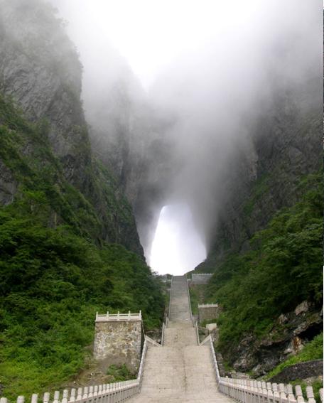 天門(mén)山上有一個(gè)天門(mén)洞,2006年03月,曾有俄羅斯之戰(zhàn)斗機(jī)在此表演飛躍天門(mén)洞的表演,還造成滿大的轟動(dòng)。上天門(mén)洞之前,必須先征服999個(gè)階梯,經(jīng)過(guò)一番努力終于登上天門(mén)洞之后,突有豁然的感覺(jué),人在山上,卻仍然在洞中,從這里更可以鳥(niǎo)瞰整個(gè)張家界市的景色。用完晚餐后,即乘車(chē)從張家界回車(chē)長(zhǎng)沙。